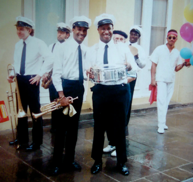 (L to R): I grew up in a typical extended New Orleans family. With Jamil Sharif playing music in the French Quarter.